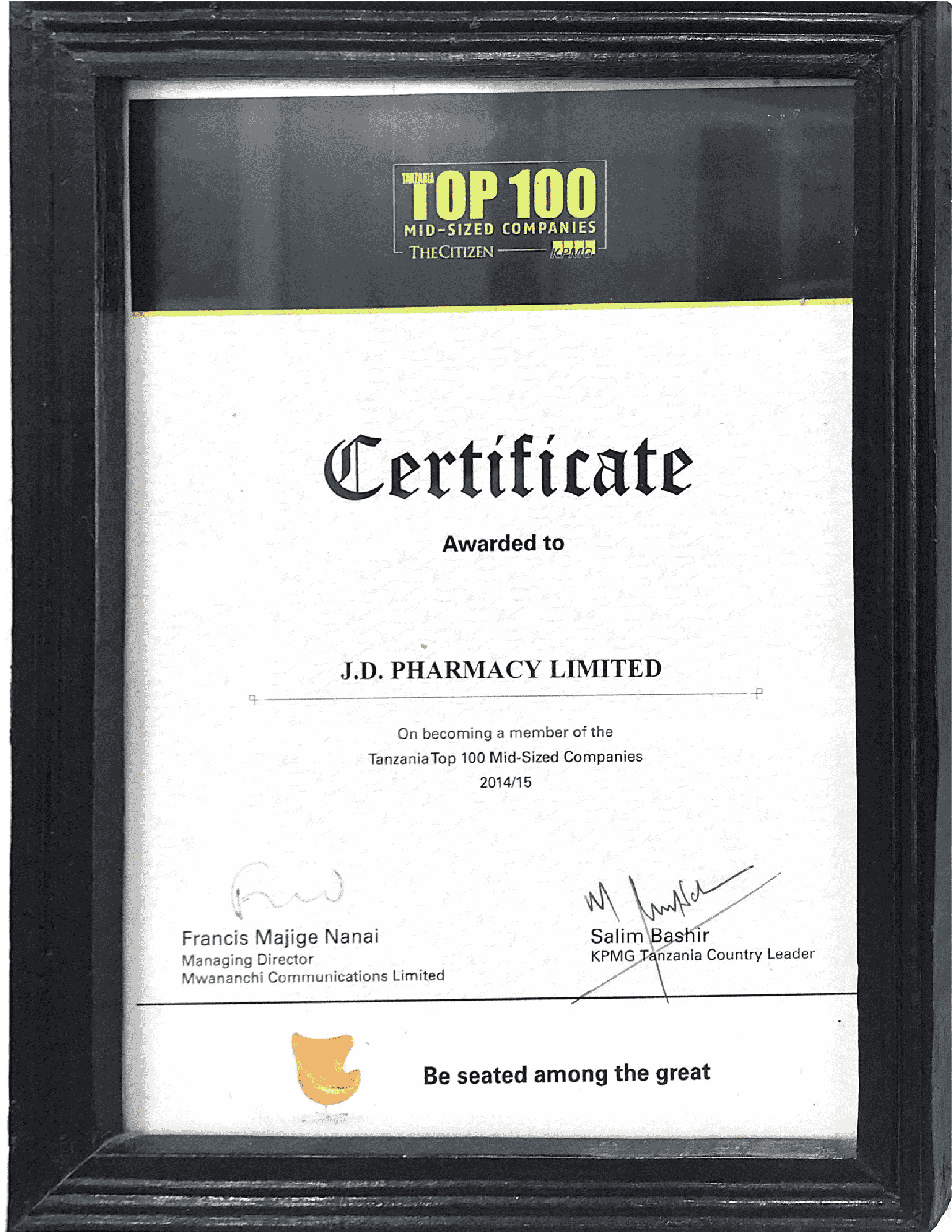 Established in 1989, JD Pharmacy is a leading provider of pharmaceuticals and OTC products with a national reach in Tanzania.